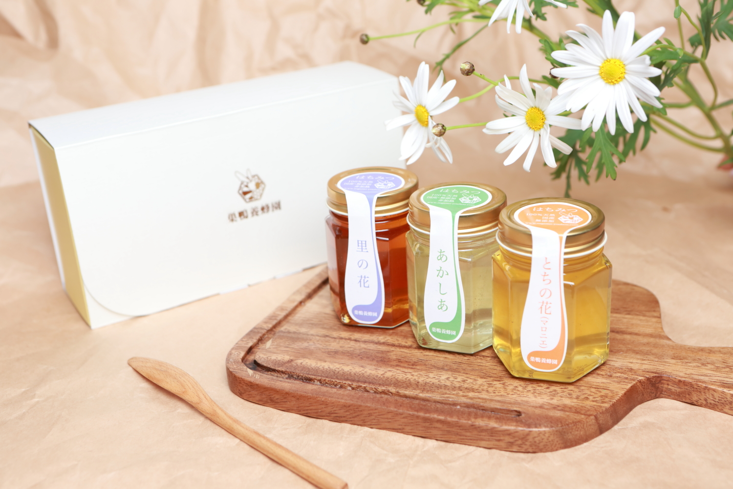 150gのはちみつを3本入れて大切な方への贈り物にいかがですか??